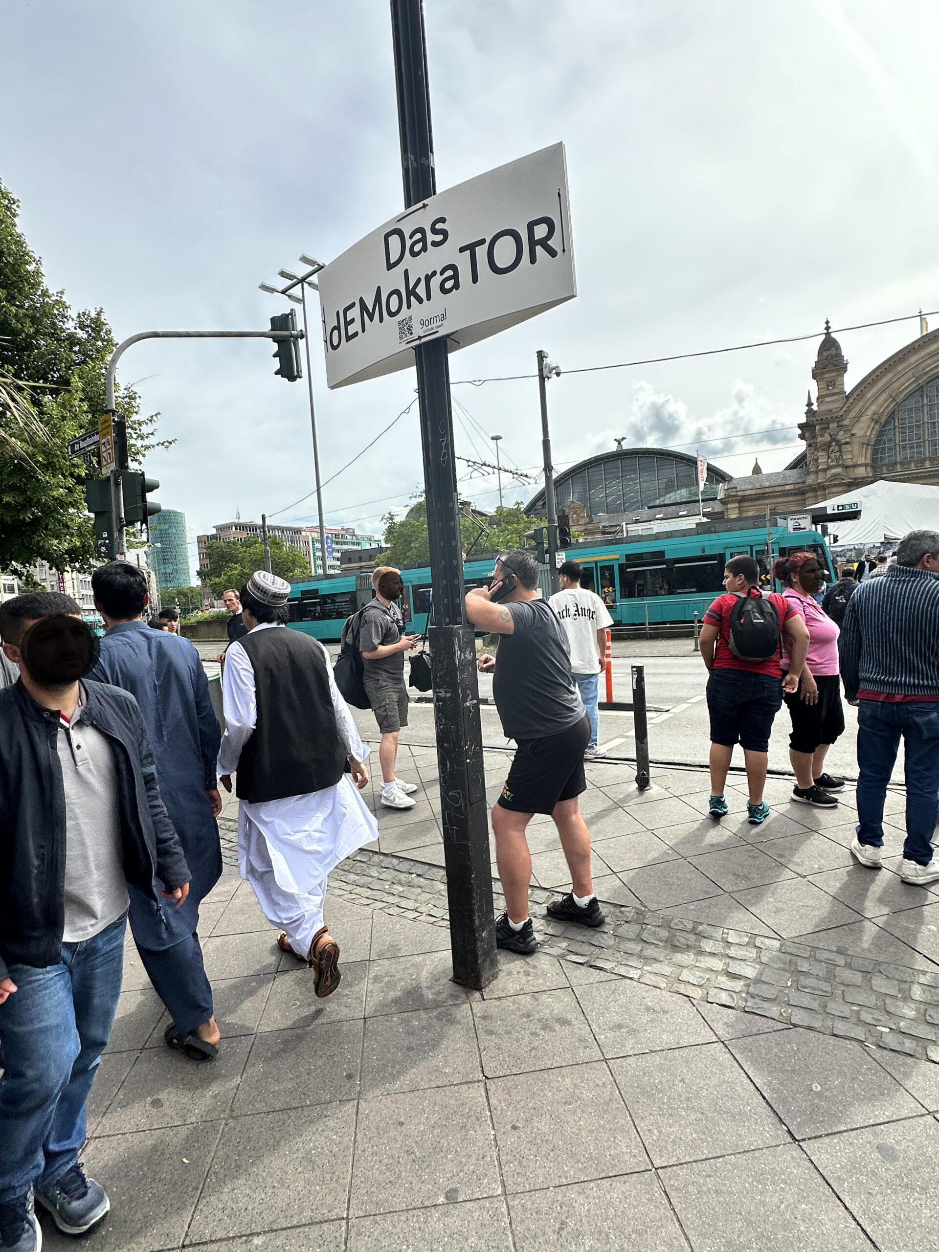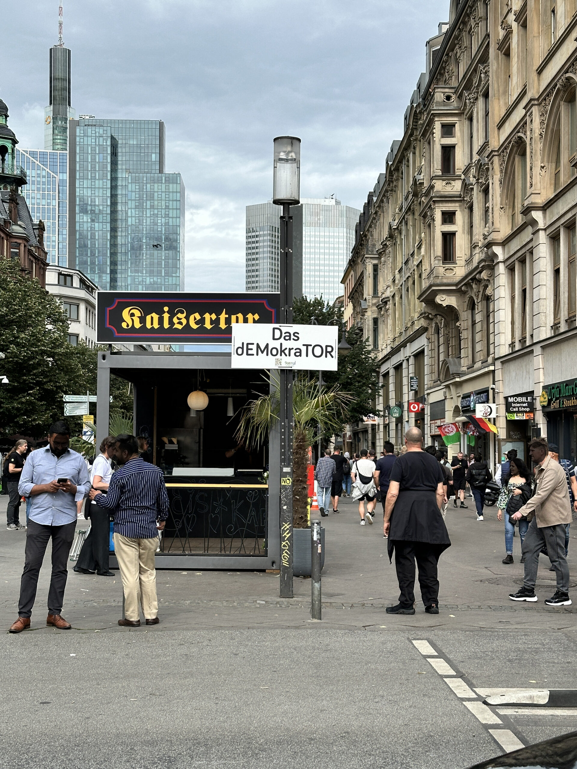 Wir verleihen den Kulturtitel Das dEMokraTOR heute, am 17. Juni 2024, zur Feier der deutsch-europäischen Einheit und anlässlich des Frankfurter EM-Auftakts. Der Kulturtitel entstand spontan vor einer Woche am 10. Juni 2024 – Im Gravitationszentrum zwischen Europawahl und Europameisterschaft und inspiriert durch die Neueröffnung des Frankfurter Kaisertors am Hauptbahnhof.
