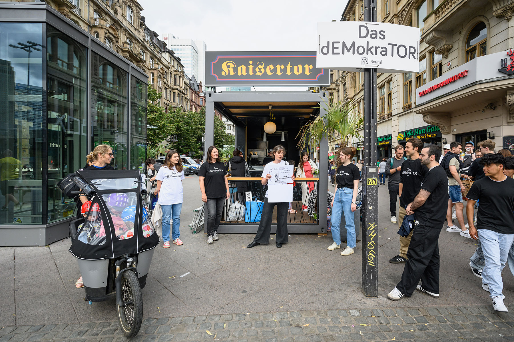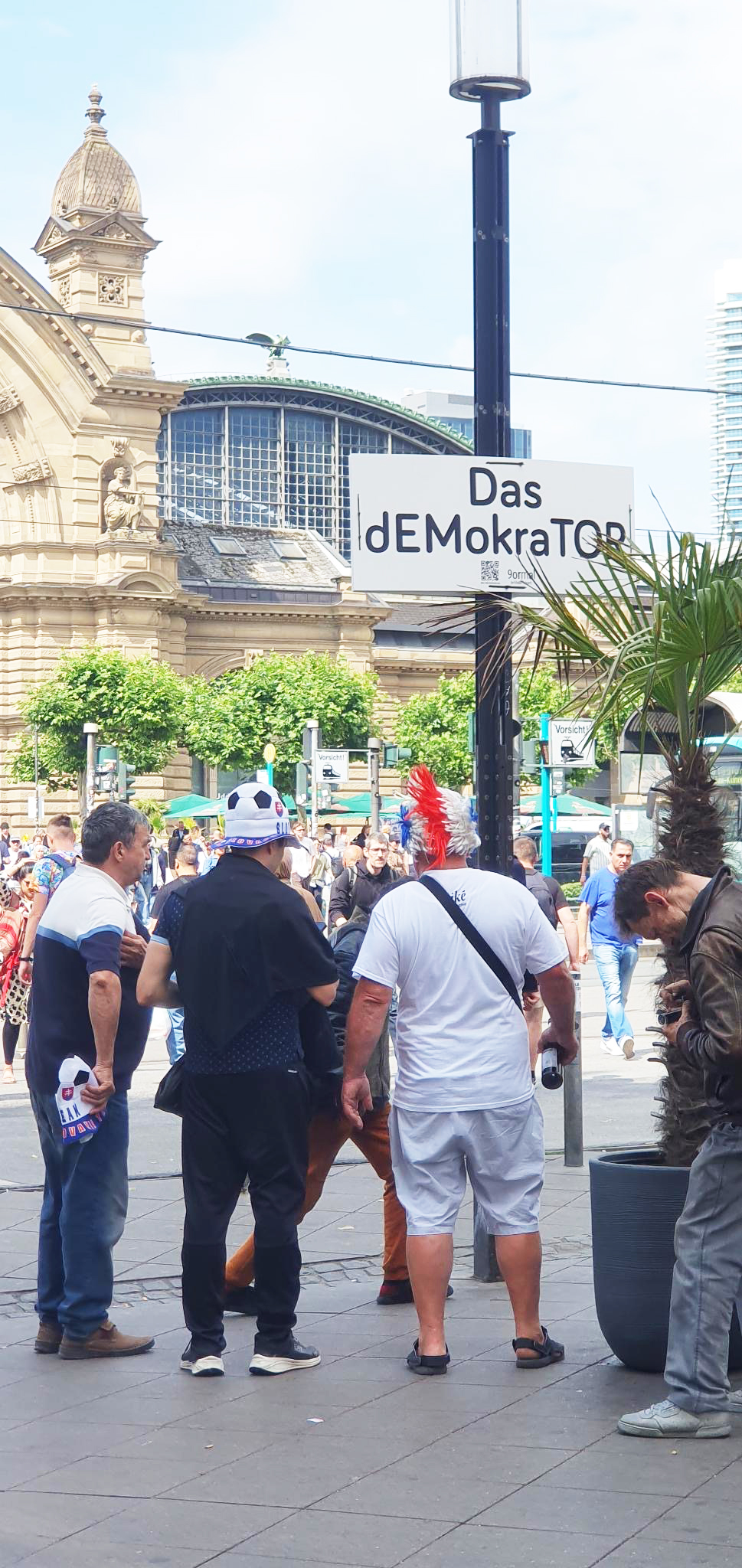 Nach dem erfolgreichen Start von Das dEMokraTOR des Kultur- und Kommunikationsprojekts 9ormal am 17. Juni 2024, bei dem das Kaisertor in Frankfurt am Main (Kaiserstraße) der Kulturtitel „Das dEMokraTOR“ verliehen wurde, steht die nächste Aktion an. Fußballbegeisterte – Einheimische wie Gäste – sollen sich als Freunde der Demokratie zeigen. Die Europameisterschaft soll als demokratisches Forum sichtbar werden.