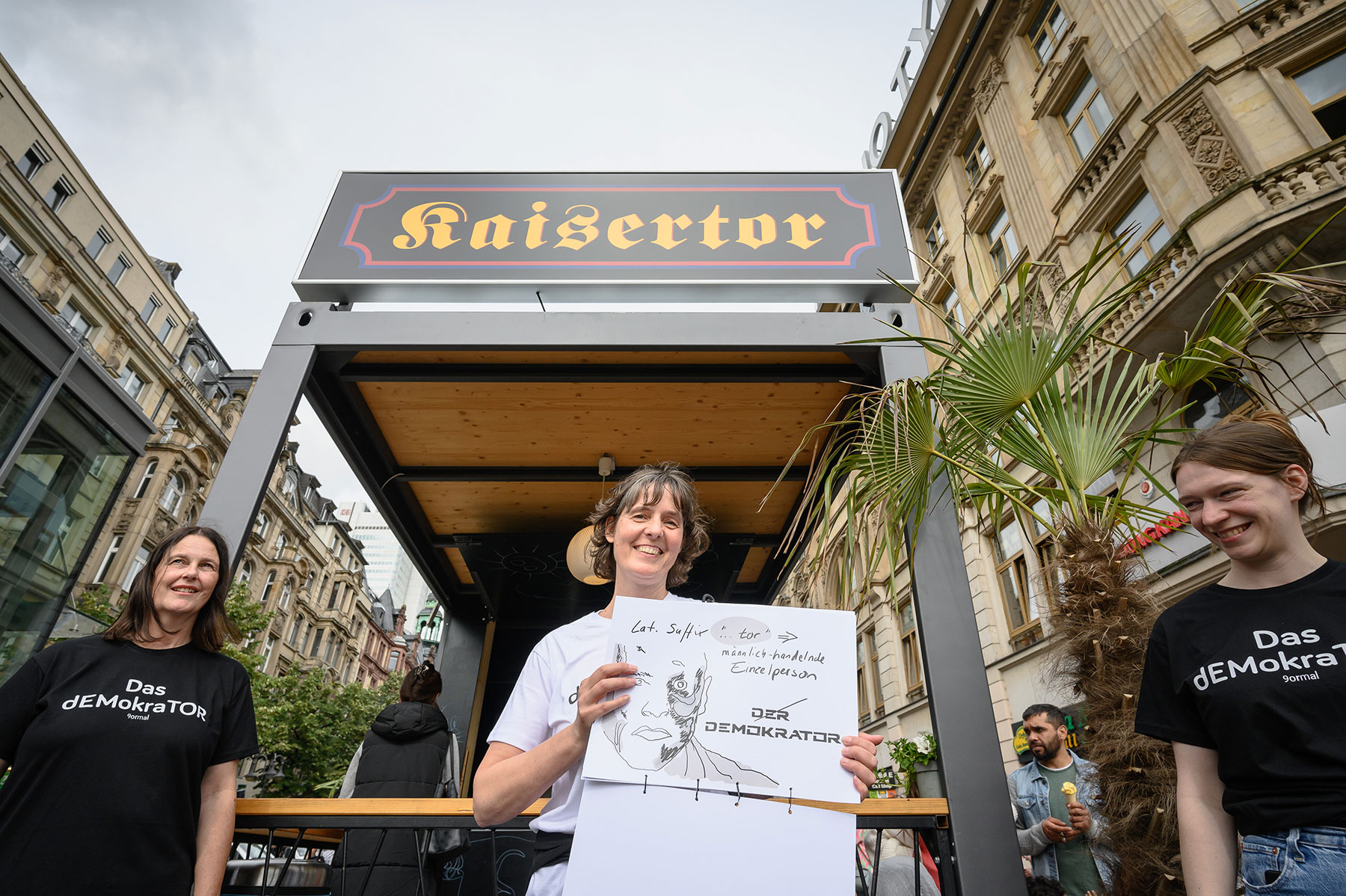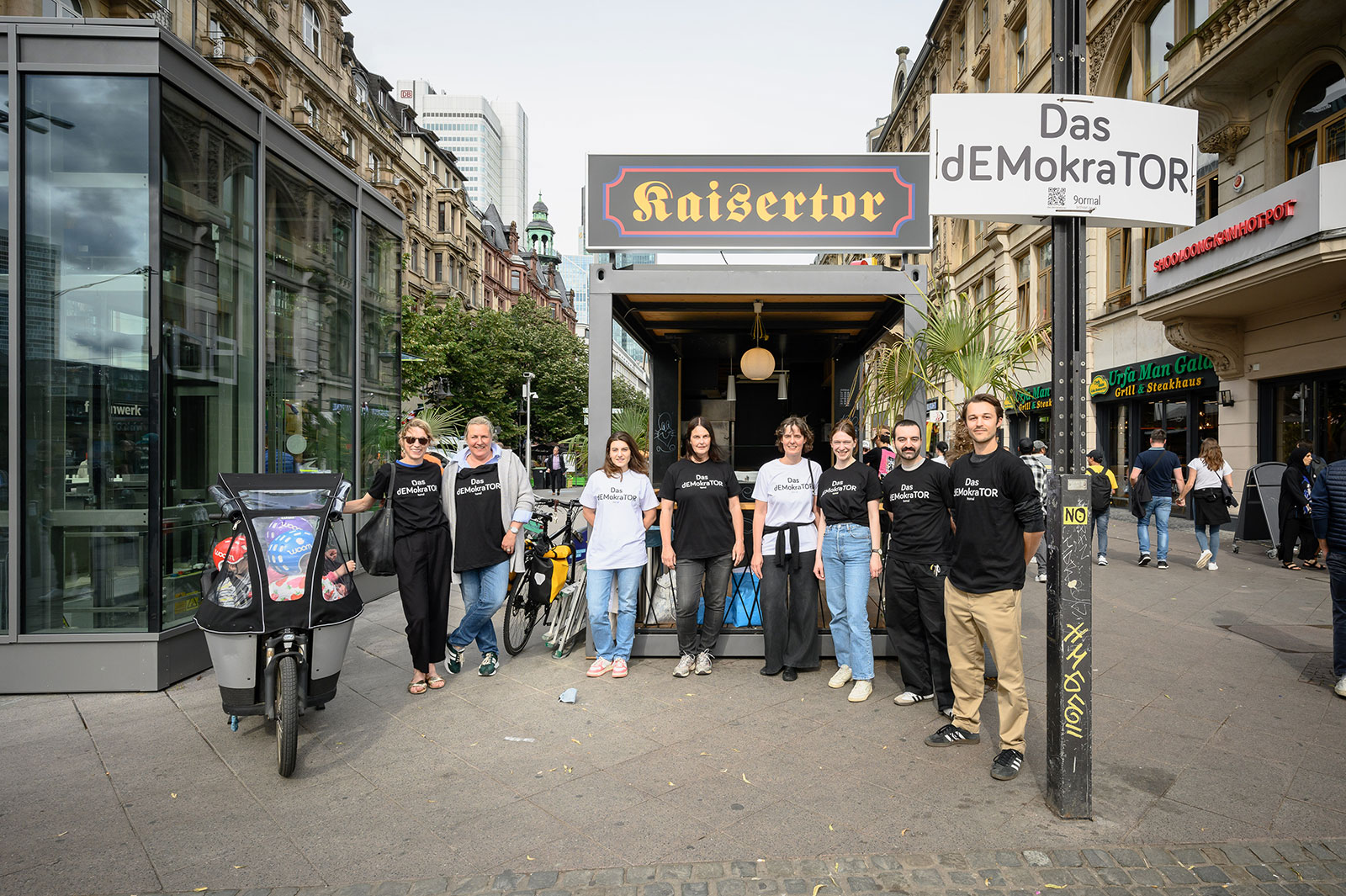 Nach dem erfolgreichen Start von Das dEMokraTOR des Kultur- und Kommunikationsprojekts 9ormal am 17. Juni 2024, bei dem das Kaisertor in Frankfurt am Main (Kaiserstraße) der Kulturtitel „Das dEMokraTOR“ verliehen wurde, steht die nächste Aktion an. Fußballbegeisterte – Einheimische wie Gäste – sollen sich als Freunde der Demokratie zeigen. Die Europameisterschaft soll als demokratisches Forum sichtbar werden.