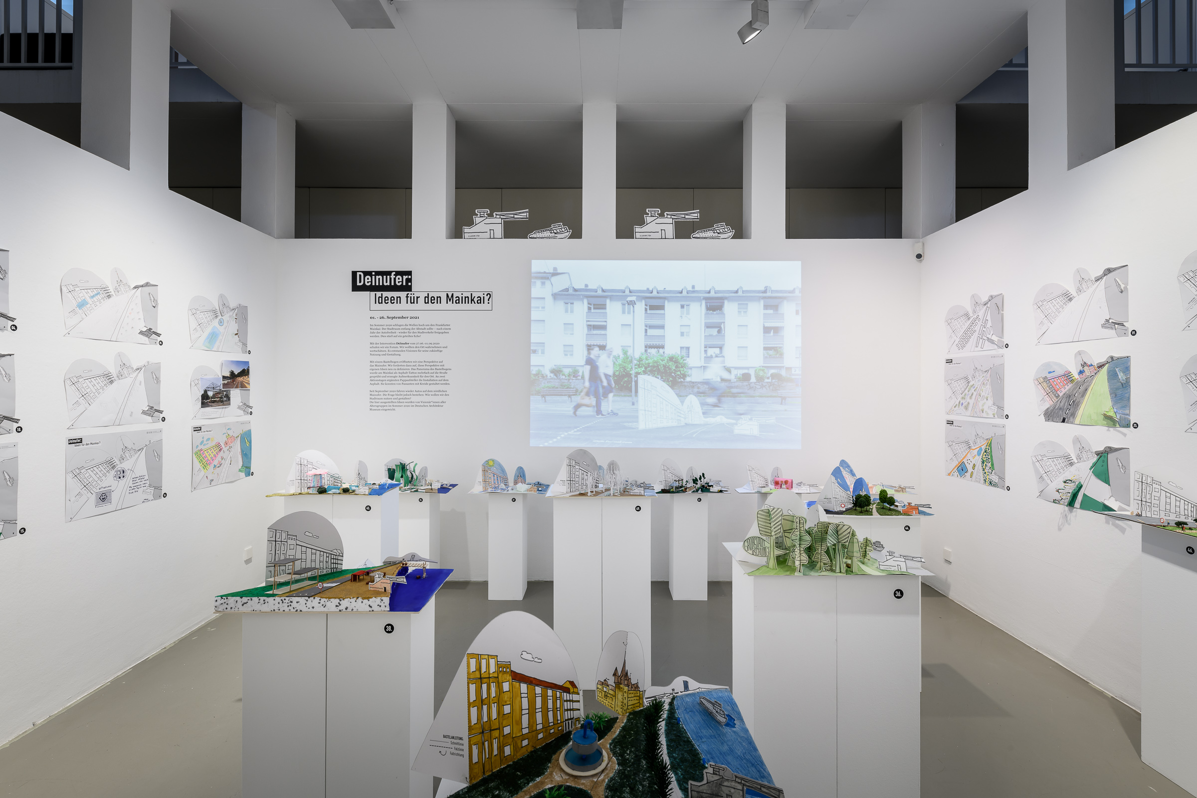 Seit September 2020 fahren wieder Autos auf dem nördlichen Mainufer. Die Frage bleibt jedoch bestehen: Wie wollen wir den Stadtraum nutzen und gestalten? Die ausgestellten Ideen wurden von Visionär*innen aller Altersgruppen im Sommer 2020 im Deutschen Architekturmuseum eingereicht.